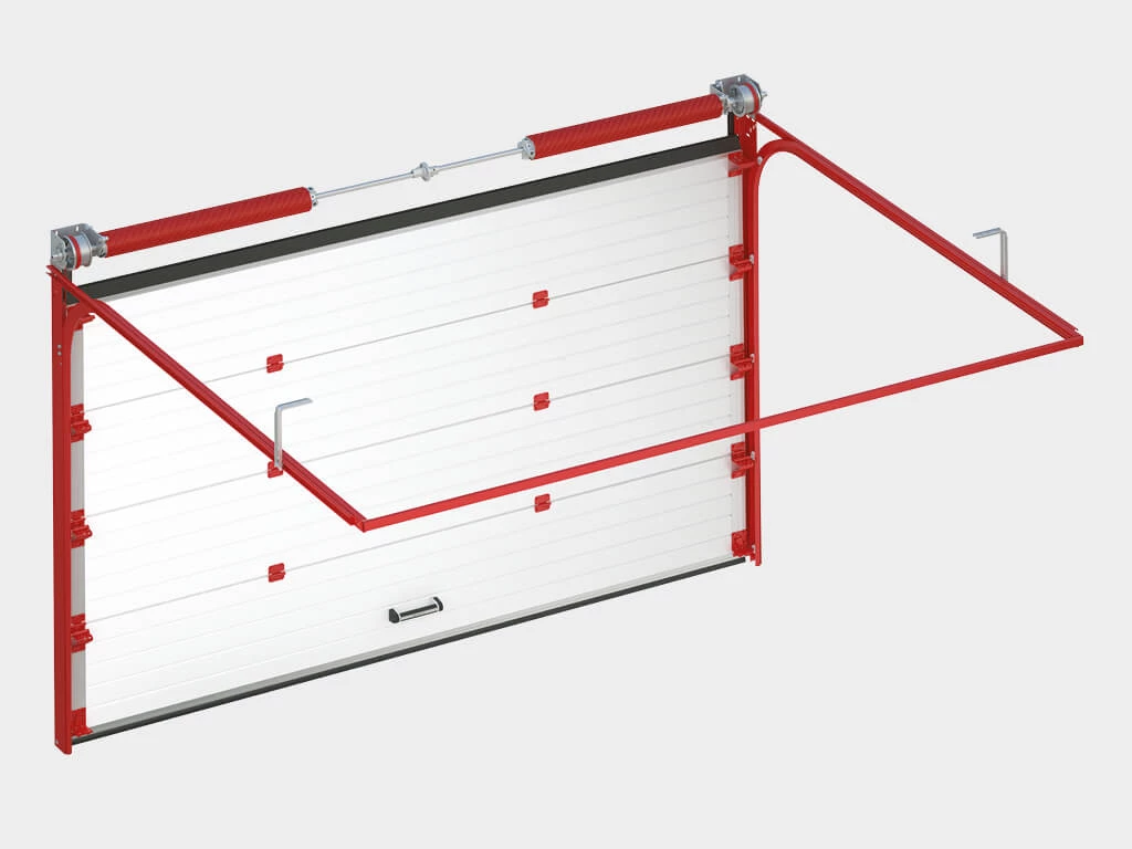 1. Система уравновешивания полотна ворот — пружинно-торсионный механизм (устройство защиты от разрыва пружины является опцией)